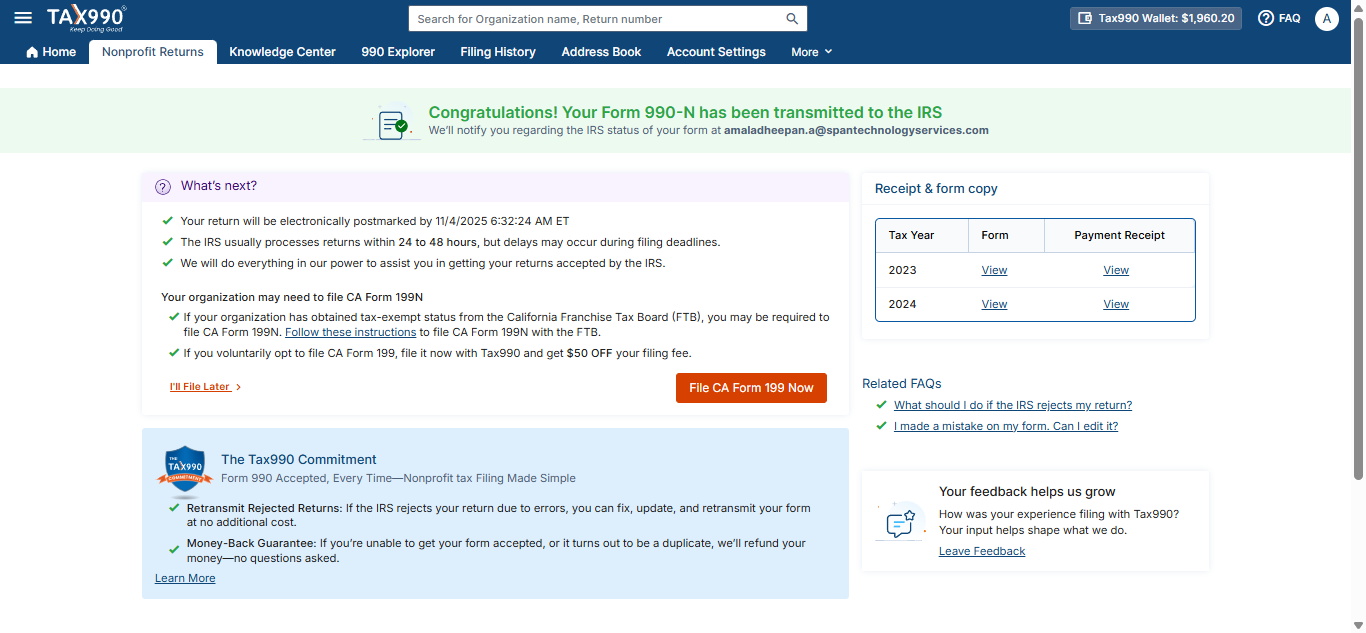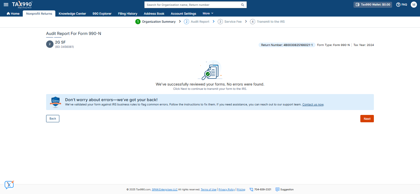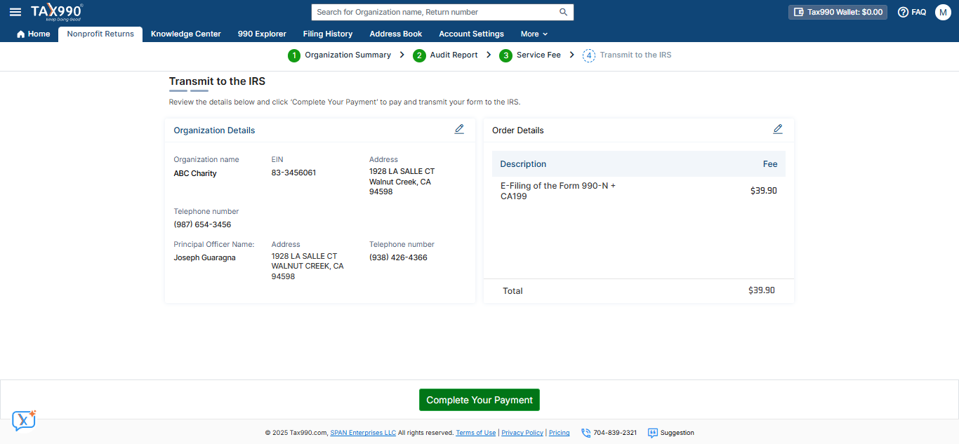 Step 8: Review the final summary of your Form 990-N and edit the details if needed. Click ‘Complete Your Order’.